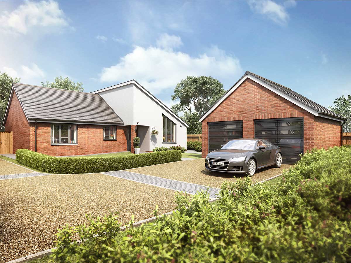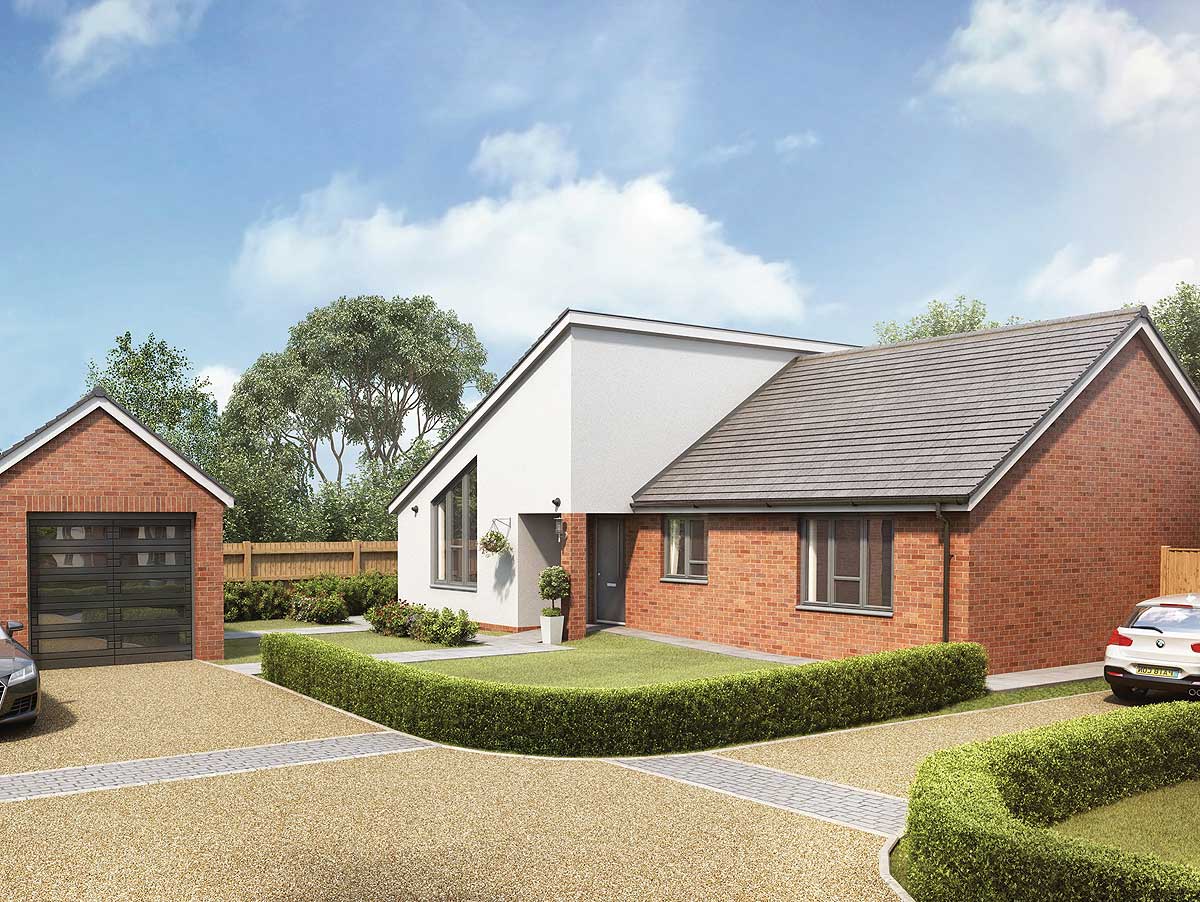 PLOT 1 - LUSH: A large 3 bedroomed single storey home with open plan living space, 2 bathrooms, a large rear garden and stunning elevations.